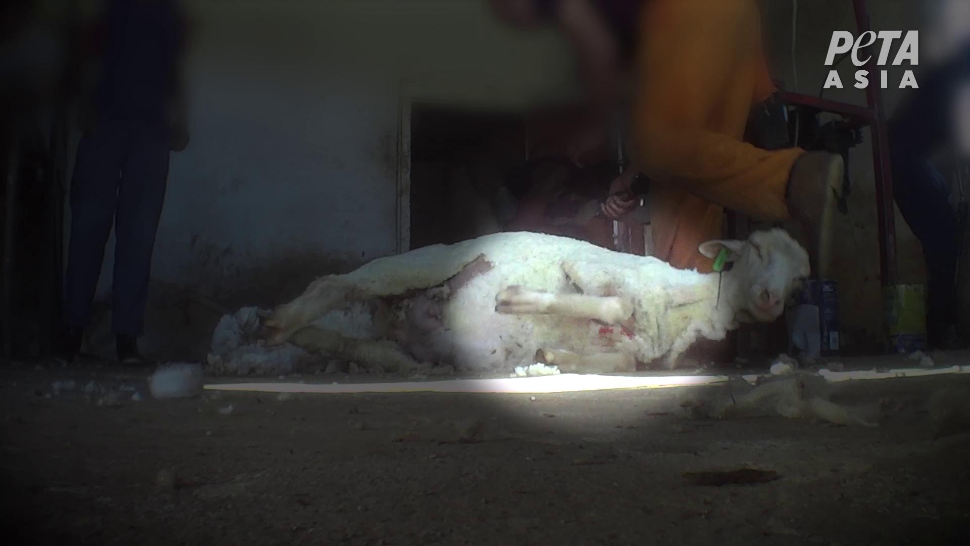 NATIVA claims to “keep close relationships with each and every single one of the breeders and growers” who produce the wool they certify. But on this NATIVA certified farm, a PETA Asia investigator documented workers kicking sheep in the head, beating them with shearing equipment and a piece of wood, and yanking lambs away from their flock-mates by their legs.