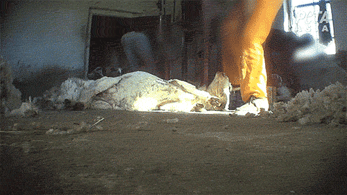 Shearers work at high speeds because they’re paid by the amount of wool they cut off, no matter what bogus certification labels it. Amid the rush, workers repeatedly slice open the sheep’s skin and pin the panicked animals down as they try to get away. Sheep are social, gentle animals who form strong bonds with each other and express emotions through facial expressions, just like humans. Imagine how scared they are when workers force them to the ground to steal their wool. One worker was so rough that a sheep was seen limping after being shorn.
